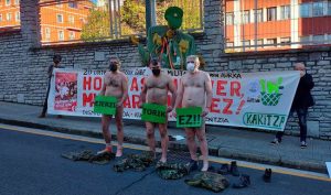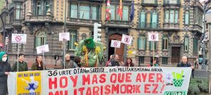 Activistas de la Koordinadora Antimilitarista Kakitzat han conmemorado el fin de la «mili» desnudándose ante el Gobierno Militar de Bilbo. Consideran que actualmente hay «una pandemia de militarismo y virus del gasto militar». Así, han denunciado el «despilfarro que supone destinar este año 22.796 millones de euros al gasto militar o que el Gobierno Vasco […]