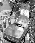 El montaje, llamado El Papamóvil , representaba a Juan Pablo II sobre el vehículo, cuyo chófer era un Niño Jesús.