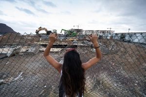Las activistas de La Tejita bajan de las grúas tras conseguir paralizar las obras del hotel