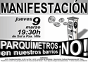 MANIFESTACIÓN CONTRA LOS PARQUÍMETROS EN LOS BARRIOS PERIFÉRICOS JUEVES 9 DE MARZO, 7,30 de la tarde Puerta del Sol —–> Calle Mayor —–> Plaza de la Villa De todos los barrios periféricos y de trabajadores afectados o amenazados por la ampliación. PARTICIPA: EL PROBLEMA ES DE TODOS Y TODAS POR UNA CIUDAD AL SERVICIO DE […]