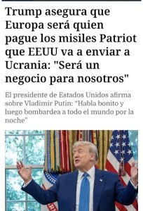Redacción Mientras Trump convierte la solidaridad en negocio, Europa —y España— asumen el coste de una guerra que amenaza con eternizarse. LA GUERRA COMO NEGOCIO GLOBAL España ha decidido financiar armamento estadounidense para donarlo a Ucrania. No se trata de material propio, como el que ya envía desde 2024 por valor de 1.000 millones de […]