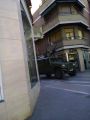 Camión militar del ejército español se pasea por las calles de Linares con un militar armado de una metralleta al frente