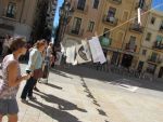Paraules per la Pau omple la plaça de la Font (Tarragona) d’il·lustracions antimilitaristes