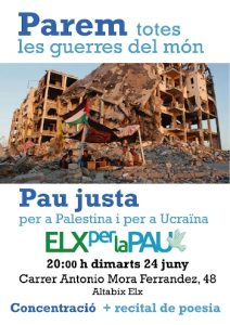 Como cada día 24 de mes, en una nueva ocasión, nos volvimos a dar cita en la ciudad de Elx para reclamar el fin del genocidio de Palestina, el cese de la guerra de Ucrania y la paz para todas esas guerras del mundo que no salen en el telediario. Bajo la convocatoria de Elx […]