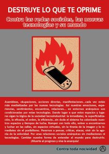 Carteles: » Destruye lo que te oprime. Contra las redes sociales, las nuevas tecnologías y su mundo»